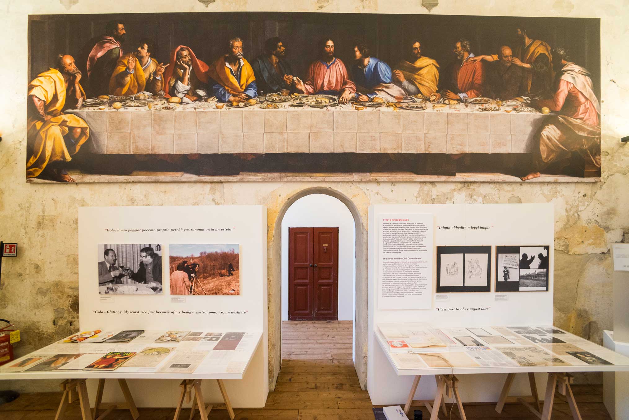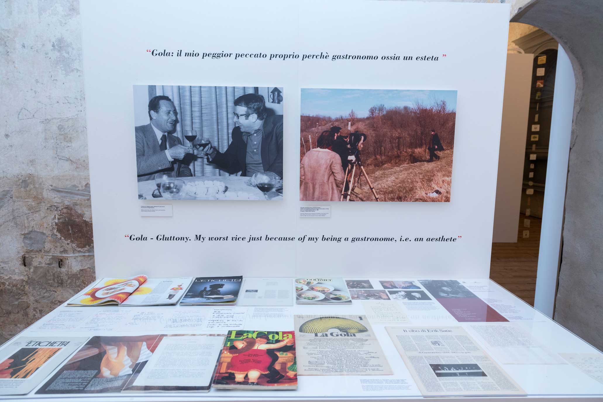 Anteprima della mostra "Luigi Veronelli - camminare la terra" presso il refettorio e il vestibolo del Complesso monumentale di Astino, Bergamo.